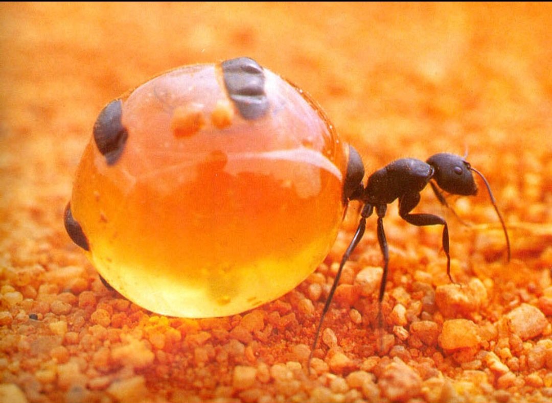 What if ant hills had living honey jars inside them? Grounded 2 should add honeypot ants to certain ant hill chambers. In real life, honeypot ants (genus Myrmecocystus) have special workers called repletes that hang from the ceiling and store nectar in their swollen abdomens like living food tanks. It would be incredible to see that underground in-game. Mechanic idea: Honeypot ants hang from chamber ceilings. Wearing full Ant Armor lets you safely harvest a small amount of nectar. Killing one gives a larger amount. They take a long time to respawn. Killing could trigger soldier aggression. It adds a renewable nectar source, risk/reward gameplay, and amazing visual potential for glowing underground chambers.