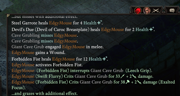 Hi all — quick follow-up to say thank you. Your insights were genuinely excellent and pushed me to actually commit to a solo run instead of only theorycrafting. I started the run aiming to eventually reach the “crit loop” territory, but the path I ended up taking was a Forbidden Fist / Steel Garrote (Monk/Paladin) — partly because I wanted a easy-to-play solo chassis (Deep Faith, Lay on Hands, Brand Enemy for long fights), and partly because I was curious if I could later get the crit-loop to heal me without a late game Sanguine Great Sword - It didn't work, as the "proc-hits" don't proc healing from Steel Garrote. Curiously, in my combat log the extra attacks often appear before the Forbidden Fist line. Early game reality check: getting the crit engine to feel “online” before you accumulate a lot of gear is still hard. In Port Maje, I played medium shield+dagger modal. Once I reached Neketaka, things improved a lot after picking up Devil of Caroc Breastplate and Tuotilo’s Palm. I tried to start using Sun and Moon early, but low accuracy/damage divided by two felt like I was paying the “split damage” tax without the crit frequency to justify it yet. Squid’s Grasp (cannot be flanked) plus Acc Modal helped a lot with consistency from levels 7 and until now. I’m level 14 now and my next plan is pushing toward Sayuka to secure Mohorā Tanga (and then progress Principi content for Scordeo’s Edge). The bounty for The Steel Preacher (for Boltcatchers) still feels out of reach at the moment. It’s honestly hard not to feel tempted by other multiclass routes for the same solo run — Wizard self-buffing into martial, a Skald angle (“will Skald go brrr?”), or even Ranger accuracy-stacking (Marked Prey / Stalker’s Link / Accurate Wounding Shot-style reliability), besides the ever great Fighter for Unbending, Stances and Intuitive. FF Monk kinda feels good, beside not looking optimal. Lots of resolve sounds safe, on demand interrupts is nice (why didn't I go Tactician instead of paladin, again?) and crush damage without changing gear is lazy and great. I'm eager to get Mohora and start wrecking havoc with Enfeeble+Stun. Thanks again.