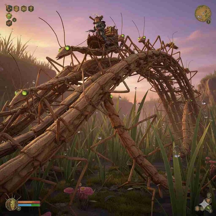 Please note the concept art attached is not a complete representation of the ideas suggested. Most of the text is explaining in depth details of the ideas suggestions and Obsidian knows what they will need to incorporate them into the game if they are selected. I believe Grounded has so much potential and is wide open for a lot to build and add in content. I appreciate the opportunity the developers have given all of us to be a part of the building process. Although I have personal opinions of the sequel having some short-comings, I still appreciate and love both games and have faith in the developers to keep me shrunk for years to come. If you see something you like here please upvote it on the discord , I will greatly appreciate it, as well as any criticism or additional suggestions please comment them below. We are a community who all have love for this franchise and I am not against anyone adding to my ideas and suggestions. In advance thank you for your consideration and support. And Thanks again Obsidian. more insects and conceptional reasoning: I am suggesting some new insect ideas that may help with progression, building, and immersion if considered and added into the game: I am also sharing a video that explains more about these insects in the real world. I will try to be specific and add as much detail to them as possible. #1- Robber Fly: this insect is vicious, it attacks wasps mosquitos etc. if they are the insect world's "Fast Mover"(a.k.a. fighter jet), then they are the Robber Fly's prey. the video below can explain more. I'm sure Flying buggies has been suggested or wish-listed a lot for grounded, and a Robber Fly would be a great selection for that as a buggy, Alternatives for items and drops could be grapple hook/repel line maybe some vine swinging action. other than that I will leave it open for other ideas for gear or features.